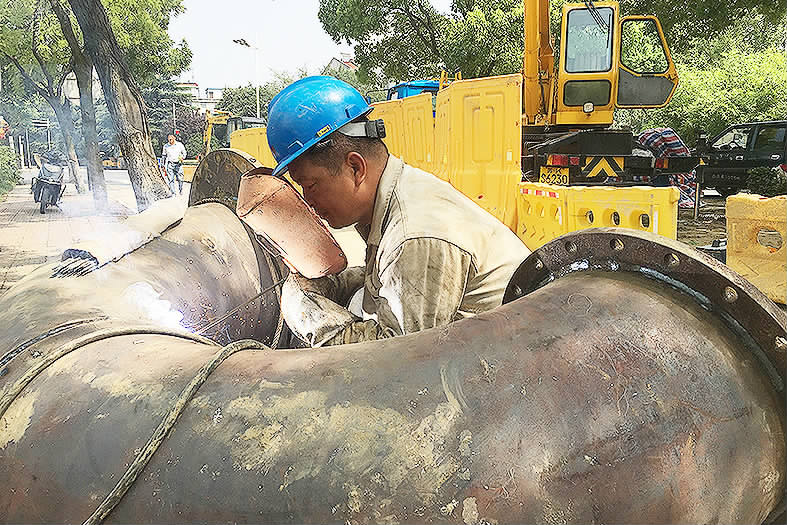 人民路自來水管線接頭多,焊接工程量大,從6月底到現在一個多月時間內,朱忠東等安裝工便一直堅守在一線,每天的戶外工作時間達到7個多小時。由于工程量大,為保證施工進度,師傅們一大早就開始工作,避開中午的高溫時段。陳國表示,公司采取了各種降溫防暑措施,把工人身體健康放在首位。