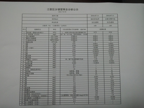2016年7月江都區鄉鎮管網全分析公示