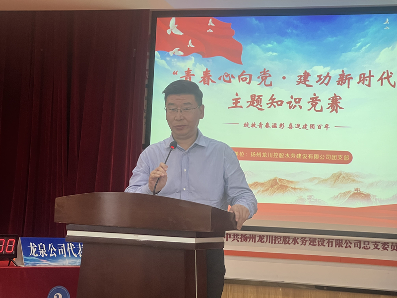 知識競賽開始前,由公司總經理王智勇同志代表公司作活動致辭和領導講話,寄語龍川水務公司廣大青年員工在各自的崗位上發光發熱,成為公司再發展、再壯大的源泉和動力。同時希望大家努力做好以下三個方面:一是要堅定理想信念,強化責任擔當;二是要堅持勤奮學習,不斷完善知識結構,提高業務素質;三是要干在實處,練就干事創業的本領。最后還倡導廣大水務青年要緊跟時代步伐,誠于做人,勤于做事,立足崗位,苦練本領,用實踐行動為我們水務公司進一步健康、和諧、可持續發展貢獻自己的青春力量!