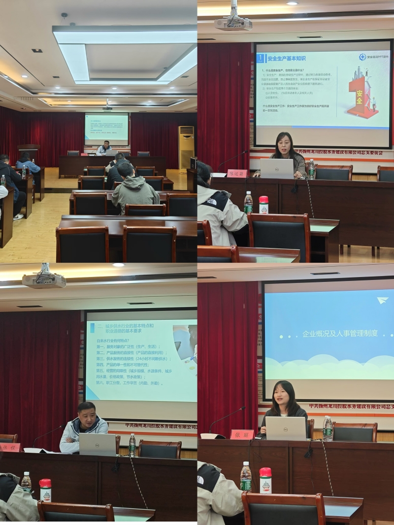 公司總經理李忠國做了開班動員講話,對各位新員工提出了殷切的希望和要求,一是要樹立從事水務工作的職業自豪感、使命感,提高工作責任感;二是要堅持慎獨自律,高標準要求自己,扣好人生第一?圩;三是要加強學習鉆研,干一行愛一行,立足崗位成長成才。本次培訓圍繞職業道德及廉潔從業教育、安全生產教育、企業概況及人事管理制度等方面內容,分別由三位經驗豐富的兼職授課老師進行講解,并安排新員工實地參觀了公司二水廠、邵伯油田污水廠等兩個生產現場,了解自來水生產工藝和污水凈化處理過程。